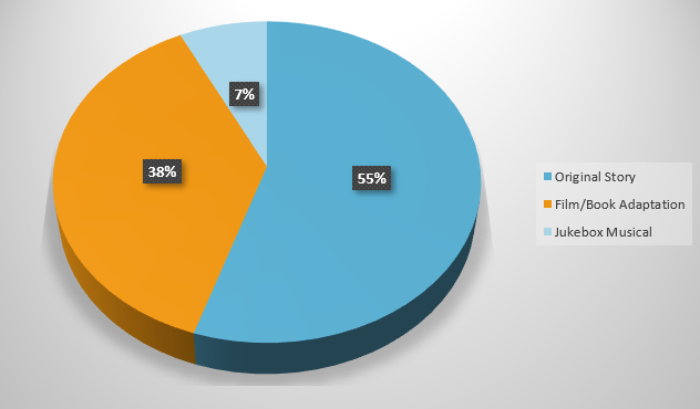 Adaptations of books and films encroached on originals and took a 38 percent stake of the year’s Broadway sales. To Kill A Mockingbird and The Phantom of the Opera represented literary representations. Meanwhile, film adaptations were also abundant. The musical adaptations of Mean Girls, Moulin Rouge! and Beetlejuice fared well, as did a trio of Disney productions (The Lion King, Aladdin, and Frozen).