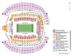 For buyers looking for the most affordable entry, the current get-in price is $208 (upper level). The median price is $402, which is a useful “what most fans actually pay” benchmark if you’re comparing options across the weekend. By stadium level, minimum pricing starts at $208+ in the upper level and $268+ in the lower level, with club tiers ranging from $358+ (Club East) to $481+ (Club North Lounge). Field-level inventory begins at $640+. If you’re shopping this one, the most consumer-friendly strategy is usually deciding early whether you want “in the building” value (upper/lower) or a club experience—because the gap between levels is meaningful, and inventory can thin quickly as kickoff approaches.