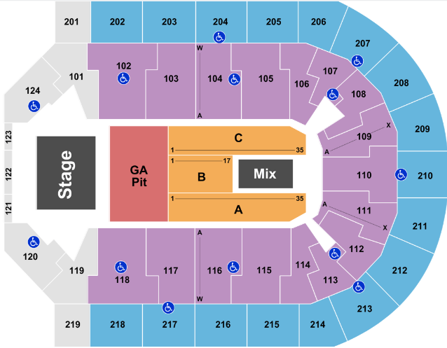 Wheelchair accessible seating is widespread throughout the arena. Guests requiring these seats are guaranteed to have unobstructed views of their event and may purchase adjacent companion seating, subject to availability. Elevators and escalators are available to provide easy access to all levels for guests with limited mobility. In addition, restrooms, parking facilities and concession areas are all in compliance with ADA standards.
